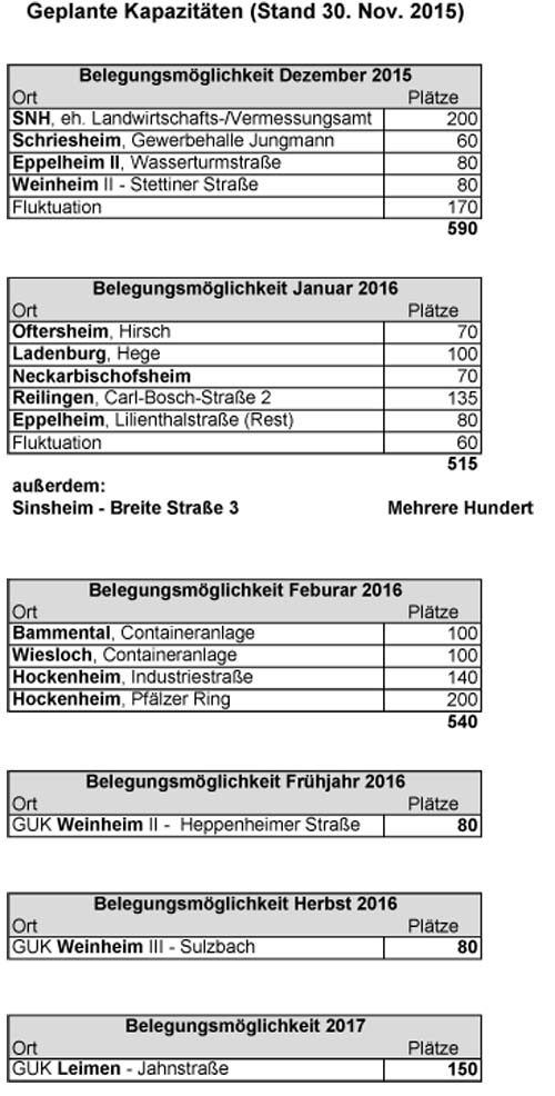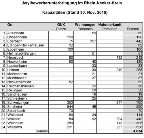 Zahlen, Daten, Fakten Dezember 2015 zur Flüchtlings-Unterbringung im RNK