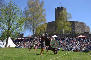 Wer das Tor zum Gelände der Burg durchschreitet, findet sich von einer Sekunde auf die nächste in einer anderen Welt wieder. Rauch und Ruß von Feuer, dumpfes Getrommel, Klirren von Schwertern und die fernen Töne der Spielleute erfüllen die Luft. Die Besucher kommen in einer längst vergangenen, aber umso faszinierenderen Zeit an.