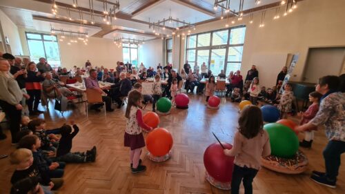 Um 14:00 Uhr am Mittwoch, den 18. April, machten sich 37 Kinder der Tagesgruppen, des kath. Kindergartens St. Michael, Sinsheim Ost, auf den Weg in die Werderstrasse, zum kath. Gemeindehaus. Zügig ging es voran den Stiftsberg hinab. Voraus gefahren war der Pfarrbus mit einer Menge Material für das anstehende Programm bei den Senioren der kath. Kirchengemeinde und den geladenen Großeltern der Kindergartenkinder. Pater Joy als Vertreter der Kirchengemeinde und Frau Bitenc die Seniorenbeauftragte von der Stadt waren ebenfalls unter den Gästen. Allee warteten bereits im frühlingshaft gedeckten und geschmückten Gemeindehaus. Das Team um Frau Dagmar Stilz (diesmal in Vertretung für Frau Norma Meny – Willert) verwöhnten die Gäste nach ihrer Begrüßung mit Kaffee und Kuchen. Inzwischen hatten einige fleißige Hände die Utensilien für das Programm der Kindergartenkinder an Ort und Stelle gebracht. Die Kinder bereiteten sich zudem im Nebenraum auf das Programm vor. Geschmückt und verkleidet mit bunten Tüchern und Bändern kamen die Kinder, nach kurzer Begrüßung durch die Leitung des Kindergartens St. Michael, Gabriele Baier, in die Runde der Gäste. Die Kinder haben mit ihrer Energie und Freude allen Anwesenden innerhalb von wenigen Minuten ein Lächeln und Strahlen ins Gesicht gezaubert. Ob bei „Ich bin ein Gummibär“ einem Trommeltanz, beim „Schmetterling du kleines Ding“ einem Singspiel, beim „Iko Iko“ Tanz oder bei den „Tulpen aus Amsterdam“ es hat immer funktioniert. Einen so vollen Saal mit singenden, wedelnden, winkenden, trommelnden und Beifall klatschenden Menschen hatte man lange nicht mehr gesehen und erlebt. Zum Abschied gab es für alle Anwesenden Tulpen, welche die Kinder rege und freudig verteilten. Danke den Spender des Blumen Outlets für diese Tulpenpracht in gelb und rot, ganz wie im Lied zuvor besungen. Kräftig sangen und bewegten sich alle Anwesenden im Saal bei der Zugabe mit. Nach den Dankesworten und dem Ausmarsch der Kinder gab es im Nebenraum für diese ebenfalls Kuchen und Getränken. Endlich wieder MITEINANDER erinnerungsreiche Momente teilen, lässt uns alle mit Freude wieder in die Zukunft blicken. Daher nehmen wir doch immer wieder die schönen Dinge des Alltags mit und freuen uns besonders über solch fröhliche Anlässe.