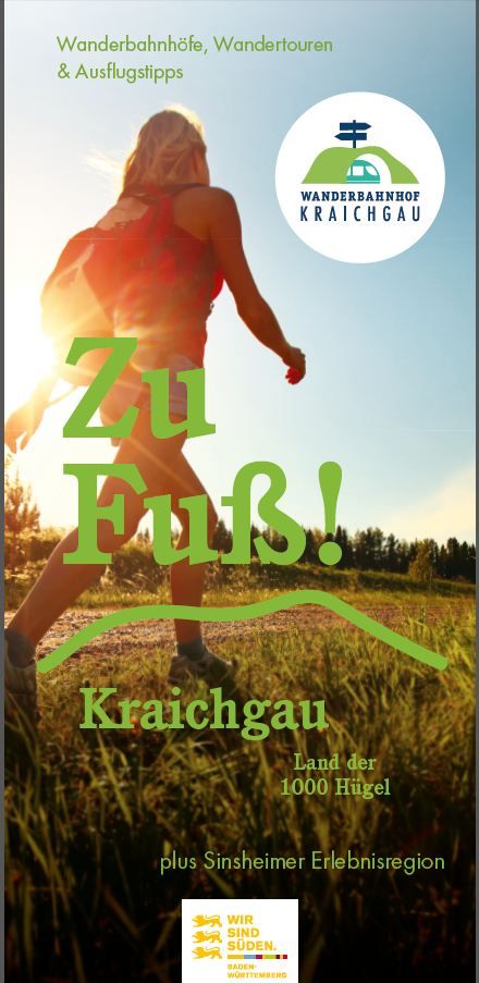 In der neuen Broschüre „Zu Fuß! Wanderbahnhöfe Kraichgau“ stellen sich die am LEADER-Projekt beteiligten Kommunen mit Ihren Wanderbahnhöfen, Wandertouren und Ausflugstipps vor. Die beiliegende Übersichtskarte zeigt den Kraichgau und die Sinsheimer Erlebnisregion und die dort verorteten Wanderbahnhöfe und Tourenvorschläge. Die kostenlose Broschüre ist in den Rathäusern der betreffenden Kommunen, dem Kraichgau Stromberg Tourismus e.V. und der Infostelle der Sinsheimer Erlebnisregion erhältlich und wird auf Anfrage von diesen auch versendet.