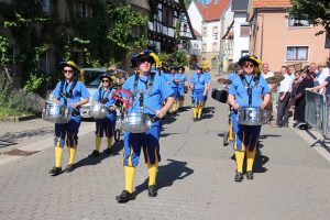 (cr) War es das letzte Hoffenheimer Dorffest. Dies wurde ich mehrfach gefragt. So wird man abwarten müssen ob es eine weitere Fortsetzung gibt. Sicher waren es weniger Vereine wie in der Vergangenheit, jedoch war die überschauliche Grösse auf dem Dorfplatz und zum Fuss der Kirche sehr gemütlich und ansprechend. Das Wetter spielte natürlich den Hoffenheimer in die Karten. Bei strahlenden Sonnenschein erwarteten die Besucher den Einzug, angeführt von dem Wiesenbacher Fanfarenzug. Es dauerte ein wenig bis das kühle Freibier ausgeschenkt werden konnte, jedoch boten Hoffenheimer Chöre eine unterhaltsame Gesangsdarbietung. Auch am Abend wurden die Gäste mit Live Musik bestens unterhalten.