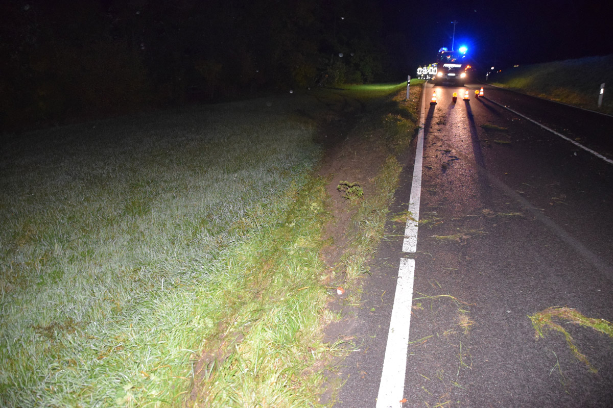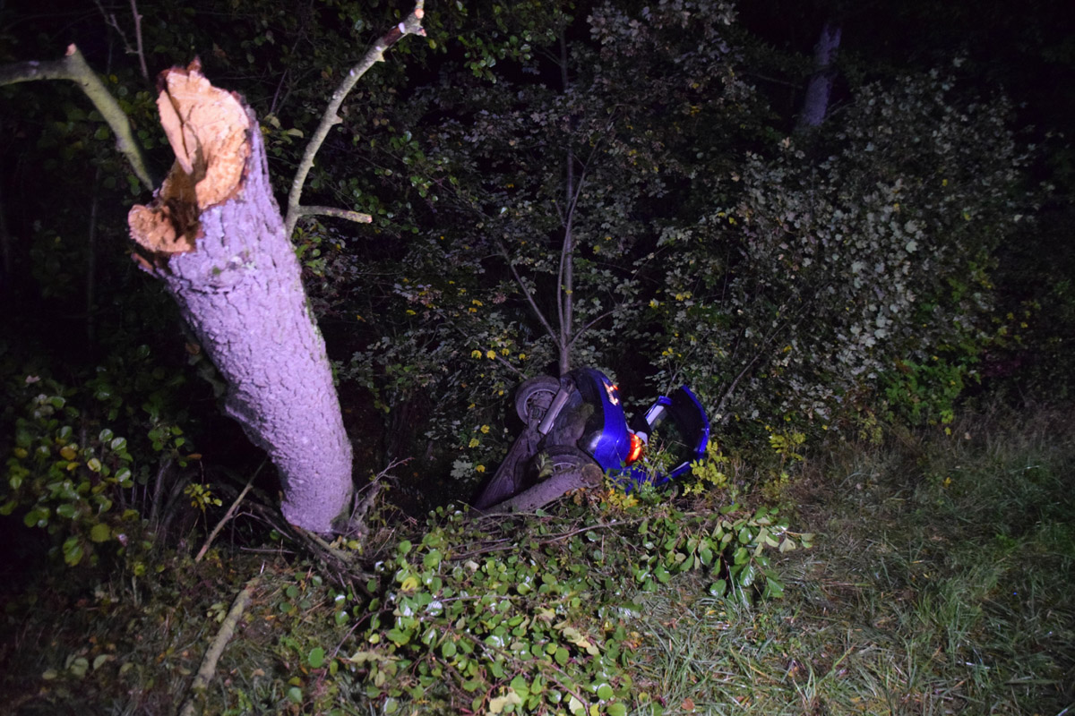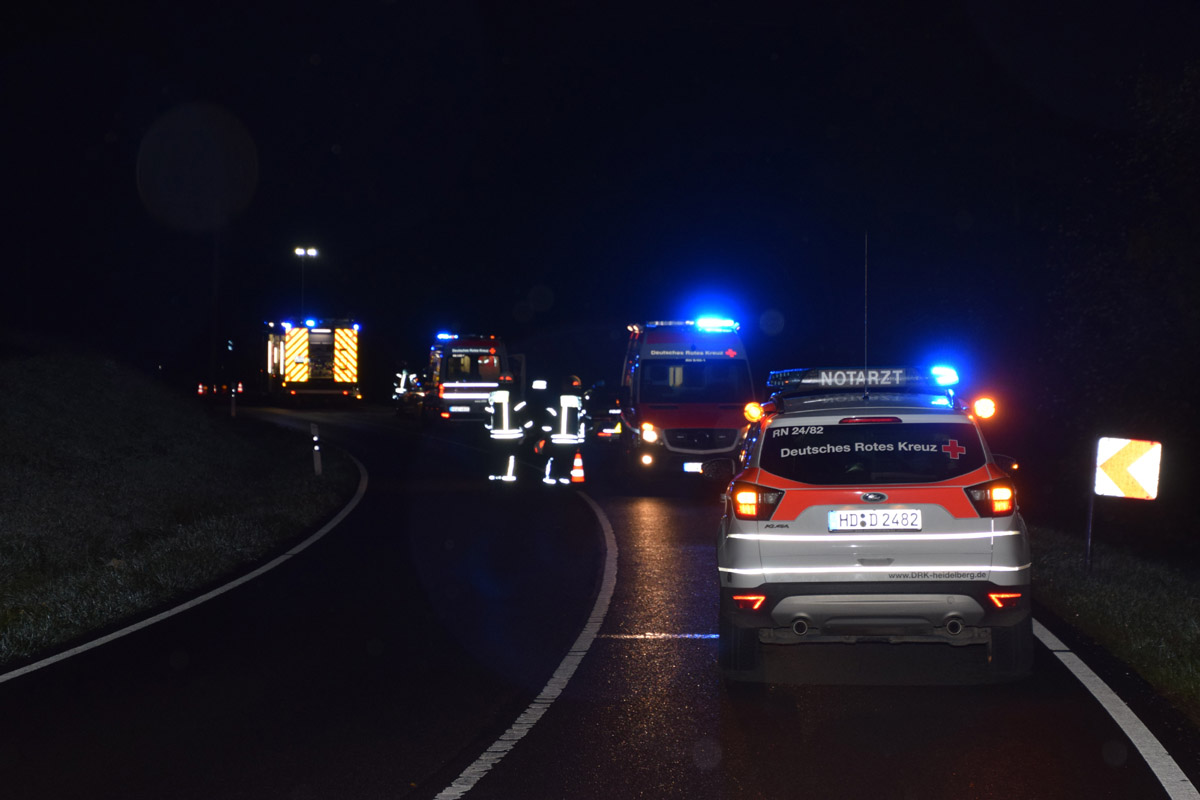 B39/Angelbachtal. (pol/red) Vermutlich wegen überhöhter Geschwindigkeit verunglückten in der Nacht zum Samstag eine 22-jährige Frau und ihre zwei Mitfahrer im südlichen Rhein-Neckar-Kreis. Der mit drei Personen besetzte VW Golf war gegen 02:30 Uhr auf der Bundesstraße 39 zwischen Mühlhausen und Angelbachtal-Eichtersheim unterwegs als die Fahrerin die Kontrolle über das Auto verlor und nach links von der Fahrbahn abkam. Dort fuhr sie einen steilen Abhang hinunter und und anschließend noch über 50 Meter Wiese. Der Wagen prallte gegen einen morschen Baum bevor er kopfüber in das Bachbett des Waldangelbaches stürzte. Beim Eintreffen der Rettungskräfte hatten sich sowohl die 22-jährige Fahrzeuglenkerin als auch ihre beiden 17 Jahre alten Mitfahrer über den Kofferraum aus dem total beschädigten Wrack des VW Golf befreit. Die Feuerwehr sicherte die Unfallstelle, der Golf musste von einem Abschleppunternehmen per Kran geborgen werden. Die drei Insassen des Pkw wurden vorsorglich zum Medizin-Check in ein Krankenhaus gebracht. Ob und inwieweit sie verletzt wurden konnte die Polizei nicht mitteilen.