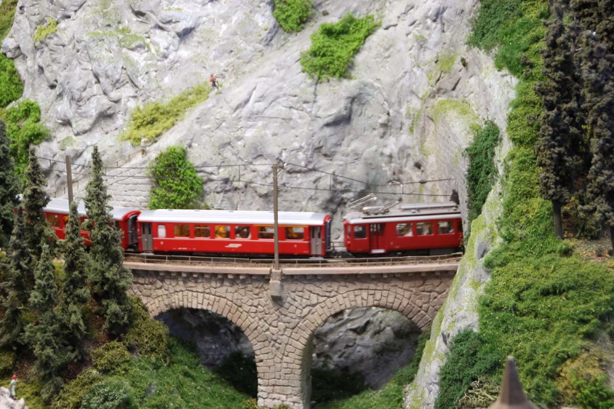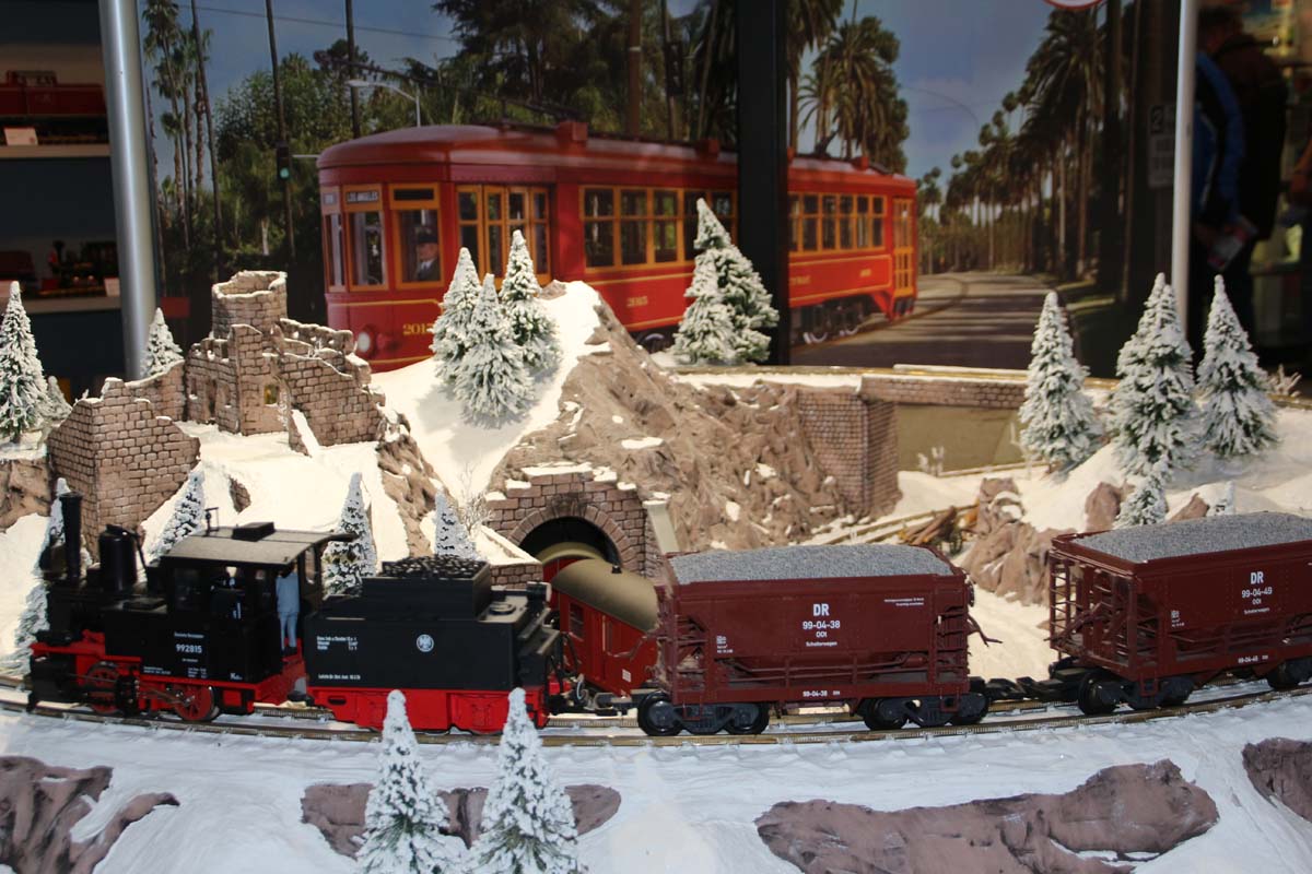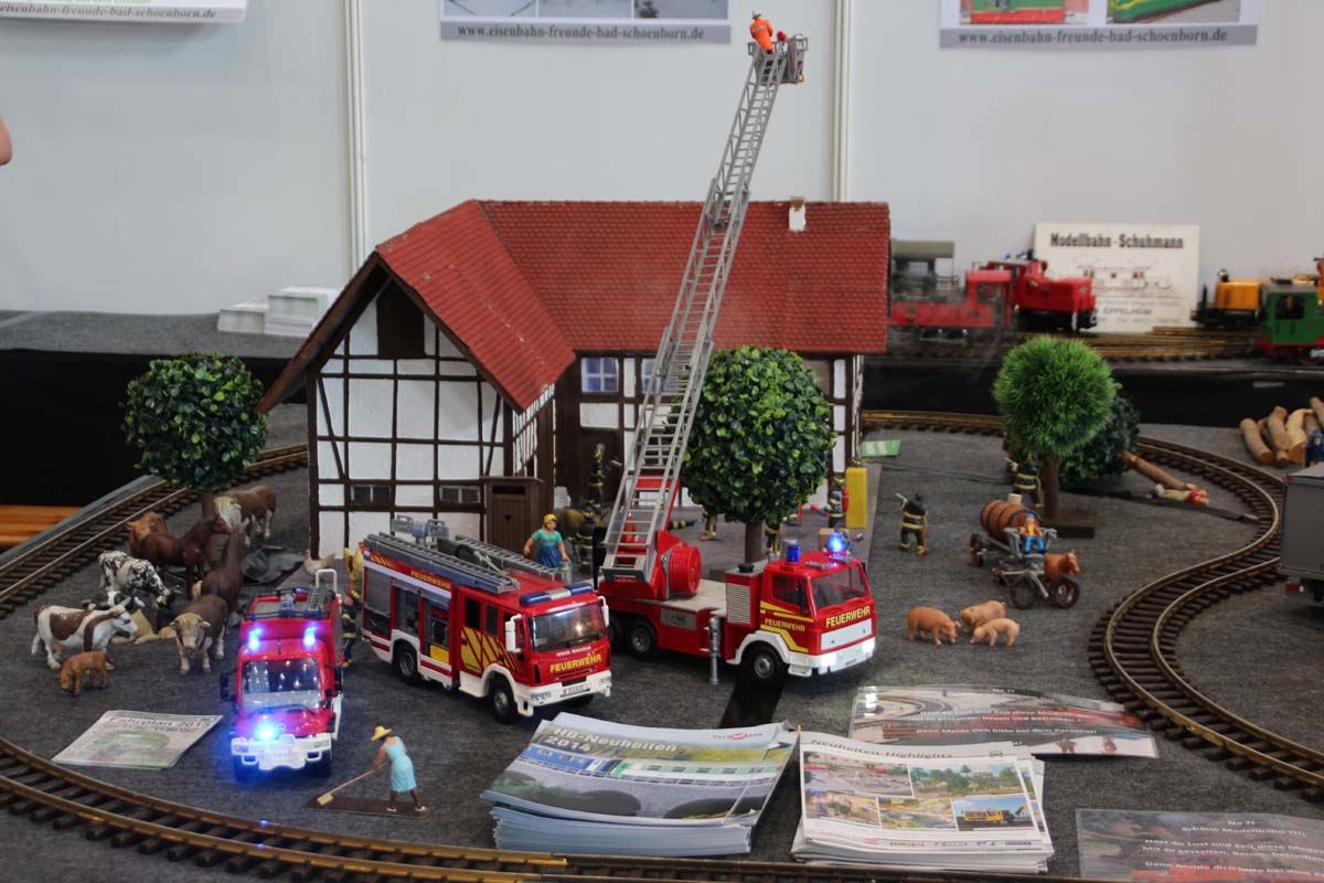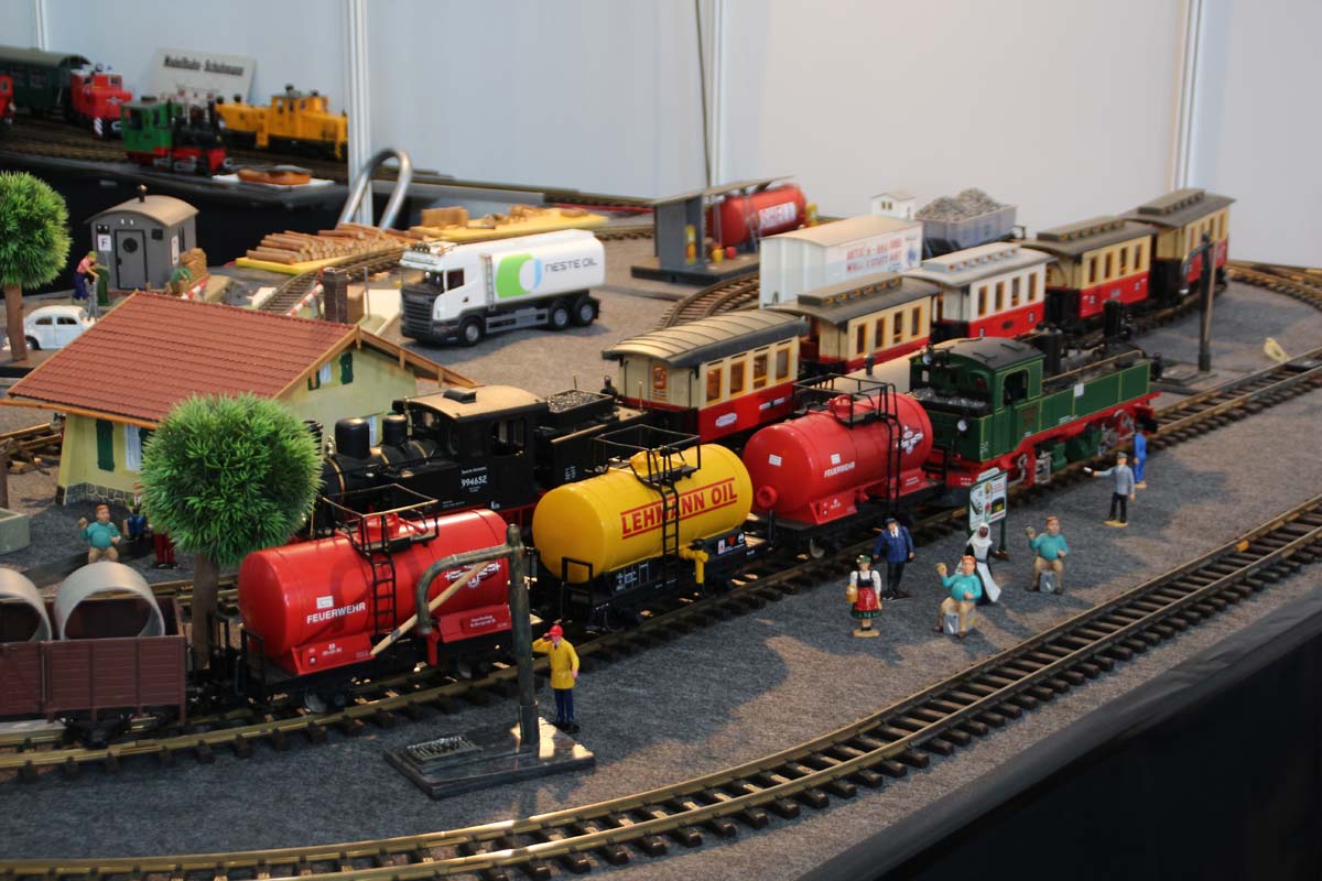 Den optischen Höhepunkt der Faszination Modellbahn bildeten auch in diesem Jahr wieder die fantasiereich oder streng historisch und bis ins kleinste Detail ausgefeilten Modellbahnanlagen in den unterschiedlichsten Spurbreiten. Ein besonders großes Spektrum fand sich dabei in der klassischen Spurbreite HO und ihrer Varianten: Hier spannte sich der thematische Bogen von der kaschubischen und masurischen Kleinbahnromantik Ende der 1960er Jahre, über die Berglandschaft des Schweizer Kantons Graubünden bis hin zu neuzeitlichen Settings aus den USA und Kanada mit Zügen, die bis zu 6 Loks und über 60 Wagen umfassen. 15 Schauanlagen gab es insgesamt zu bewundern.