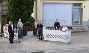 (Stadt Sinsheim): v.l.n.r.: Oberbürgermeister Jörg Albrecht, Werner Rudolf, Karl Braun, Richard Wörtz, Julie von Gemmingen, stellvertretende Ortsvorsteherin von Ehrstädt, und Ulrike Bauer, Ortsvorsteherin von Hasselbach, machten sich in Ehrstädt ein Bild von den nahezu abgeschlossenen Bauarbeiten