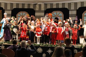 Bei der fünften Auflage des russischen Weihnachtsfestes in diesem Jahr brachte die Samstagsschule alpha betiki ein kleines Theaterstück auf die Bühne. Die Sprechrollen (in russischer Sprache) wurden von den Jugendlichen Schülerinnen und Schülern übernommen. Die Handlung von der traurigen Prinzessin Nesmejana bot den optimalen Rahmen zum Einbezug aller Altersgruppen. Verschiedene Tänze wurden von Kindern in unterschiedlichen Altersgruppen auf die Bühne gebracht. Dies diente dazu, Nesmejana aufzumuntern. Doch erst nach dem Erscheinen von Ded Maros gelang es, die Hexe als falsche Snegurotschka zu entlarven und die „richtige“ Snegurotschka, die Enkelin von Väterchen Frost, aus der Gewalt der Hexen zu befreien. Dann war auch Nesmajana wieder glücklich! Klar, dass Väterchen Frost im Anschluss für jedes Kind ein kleines Geschenk verteilen ließ!